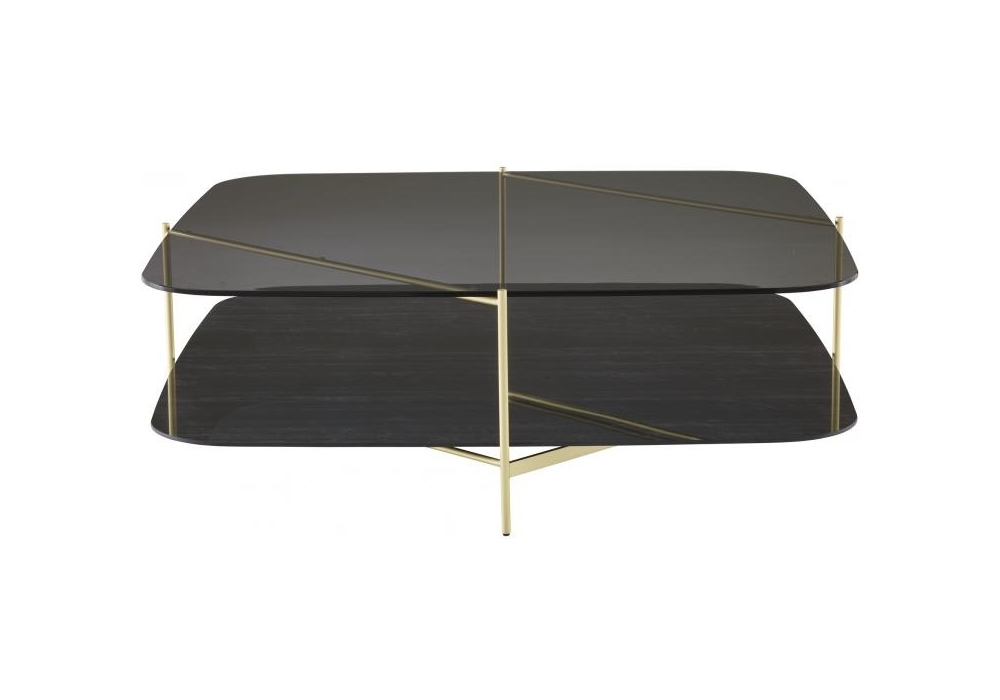 Clyde conçue par Numéro111 pour Ligne Roset est une table basse avec structure en acier, disponible en 2 finitions. Plateau supérieur en verre fumé gris et plateau inférieur en grès céramique avec effet marbre noir ou blanc. Disponible en différentes dimensions.