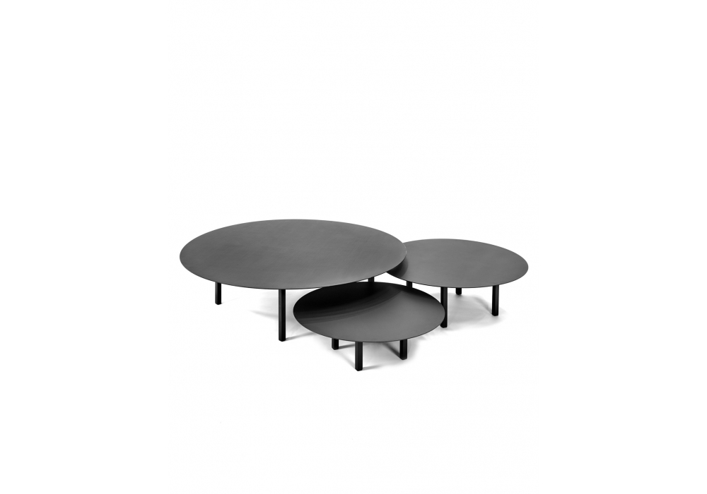 Low Table conçue par Bea Mombaers pour Serax est une table basse, structurée par quatre pieds quadrangulaires et une base circulaire en acier peint en noir. La table basse est disponible en trois tailles différentes.