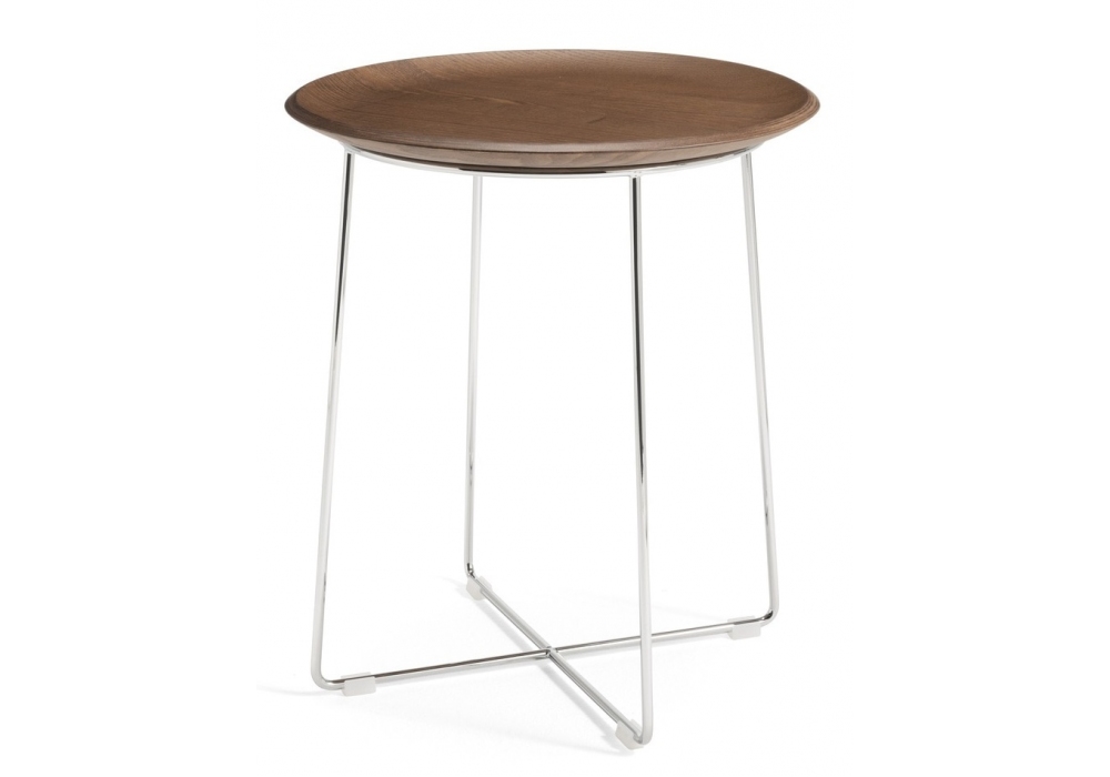 Al Wood conçue par Philippe Starck pour Kartell est une table d'appoint réalisée avec plateau en bois et structure en acier chromé ou peint. Disponible en différentes finitions.