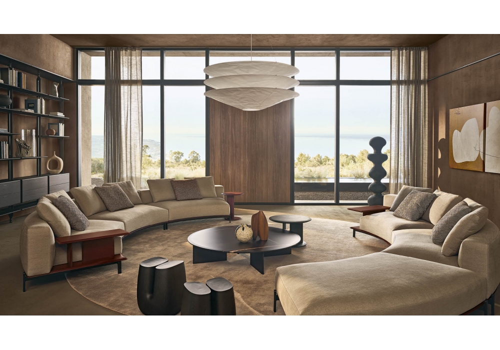 Mush conçue par Jean-Marie Massaud pour Poliform est une collection de tables basses avec structure en orme noir et plateau disponible en orme ou marbre, poli et brillant.