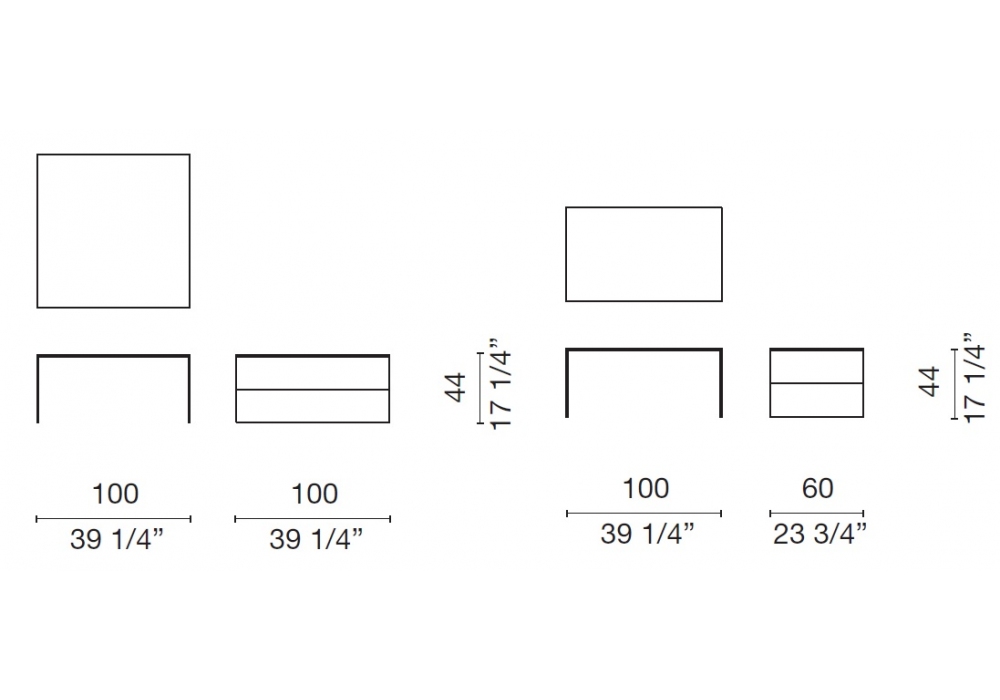 | Dimensions | 100 x 100 x H 44 cm; 100 x 60 x H 44 cm |