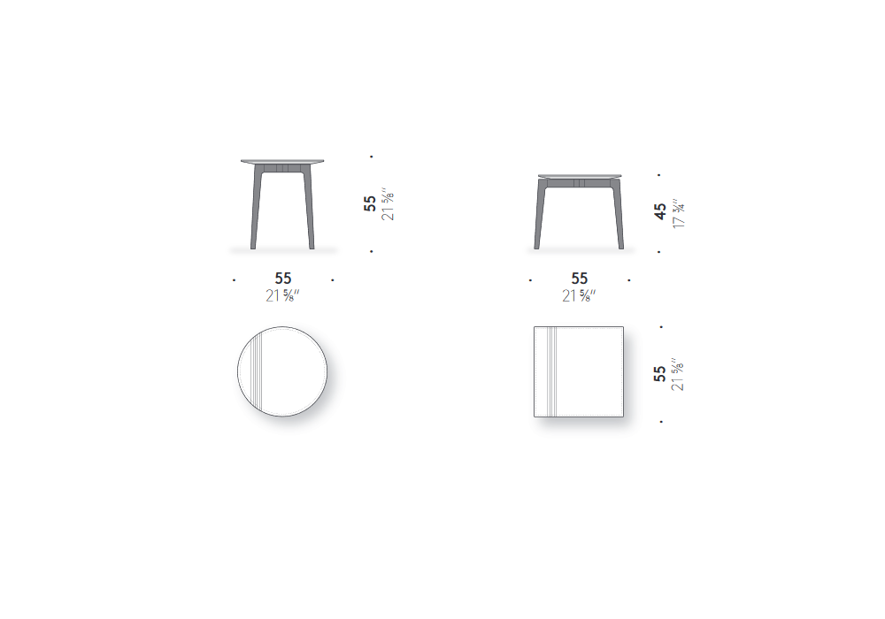 | Dimensions | - Ø 55 x H 55 cm; - 55 x 55 x H45 cm. |