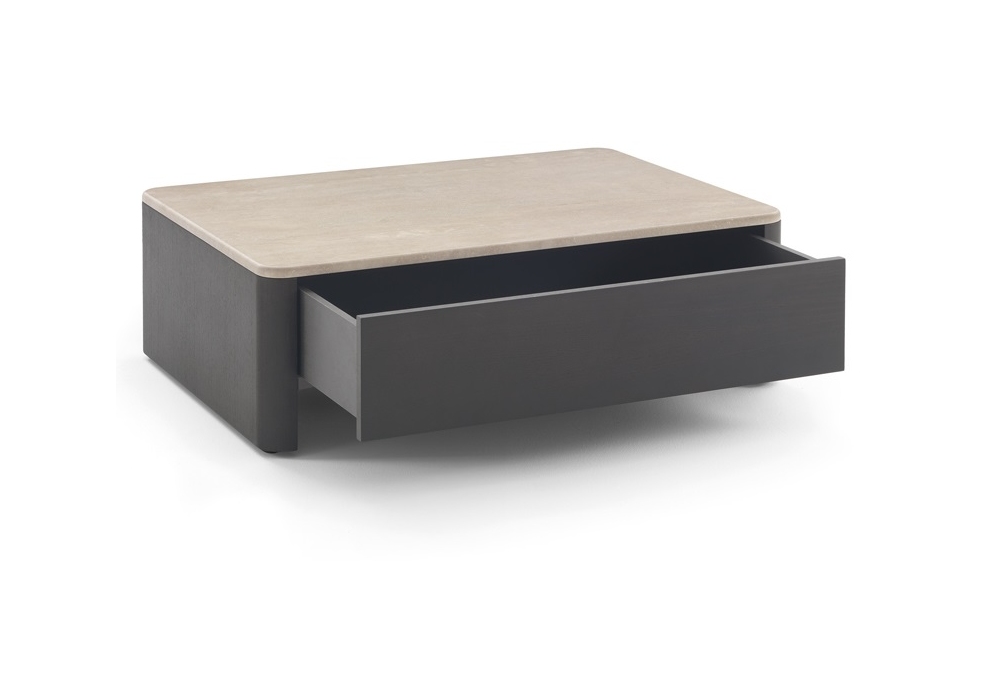 Tokio conçu par Claesson Koivisto Rune pour Arflex est un module avec tiroir réalisé avec une structure en frêne teinté chocolat et un plateau en marbre Travertino ou en frêne teinté chocolat.