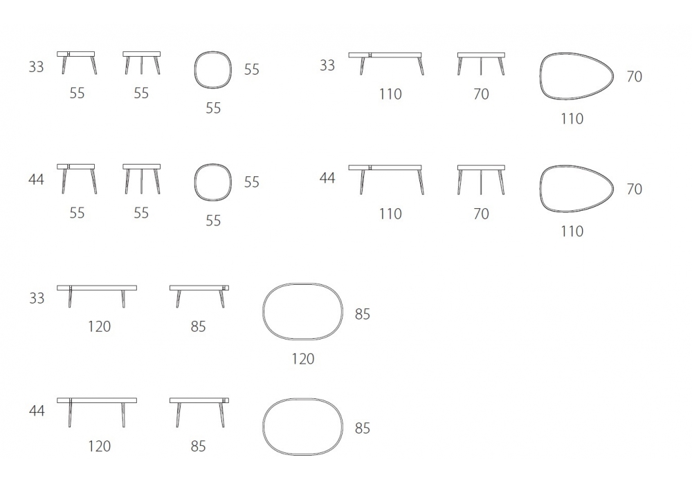 | Plateau | 55 x 55 cm; 110 x 70 cm; 120 x 85 cm. |