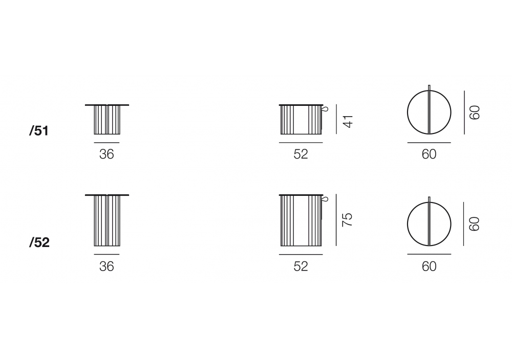 | Dimensions | 36 x 52 x H 41 cm; 36 x 52 x H 75 cm. |