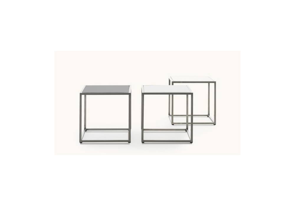 DS-9075 conçue par Antonella Scarpitta pour De Sede est une table basse avec structure en acier inoxydable et plateau en verre. Disponible en différentes finitions et dimensions.