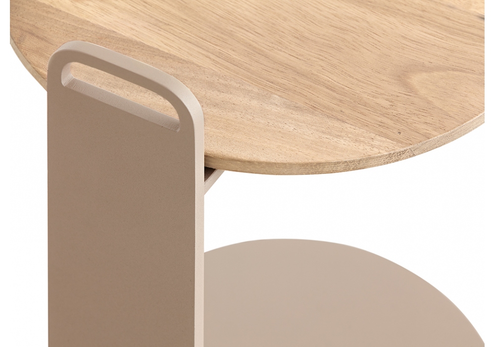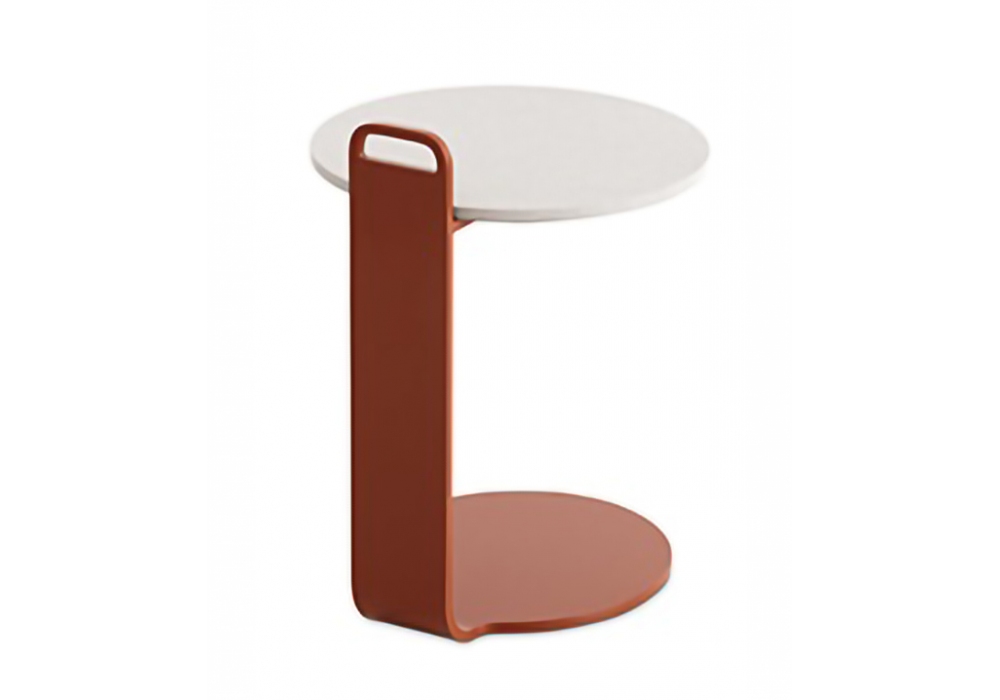 Isla conçue par Sebastian Herkner pour Gan est une table d'appoint avec structure en aluminium enduit de poudre et plateau en bois Dekton ou Iroko. Disponible en différentes finitions.