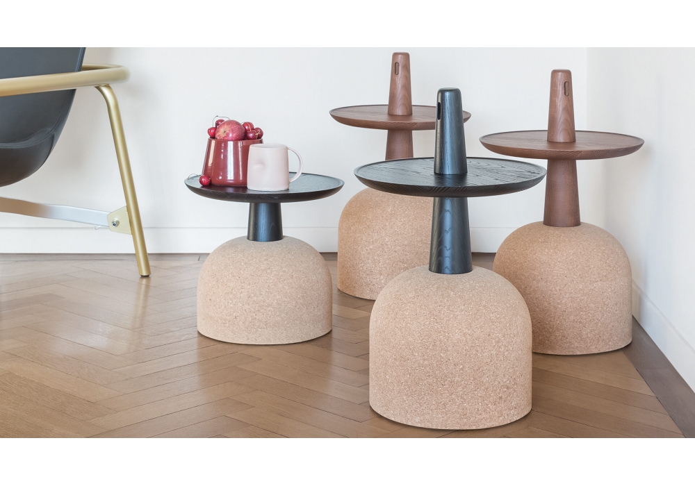 Assemblage conçue par Alain Gilles pour Bonaldo est une petite table avec base en liège et plateau en bois massif, en différentes finitions. Disponible en 2 tailles.