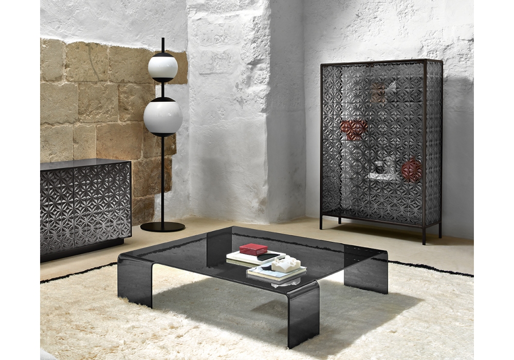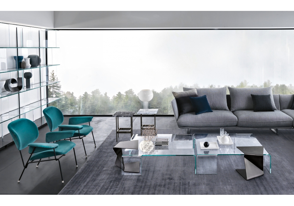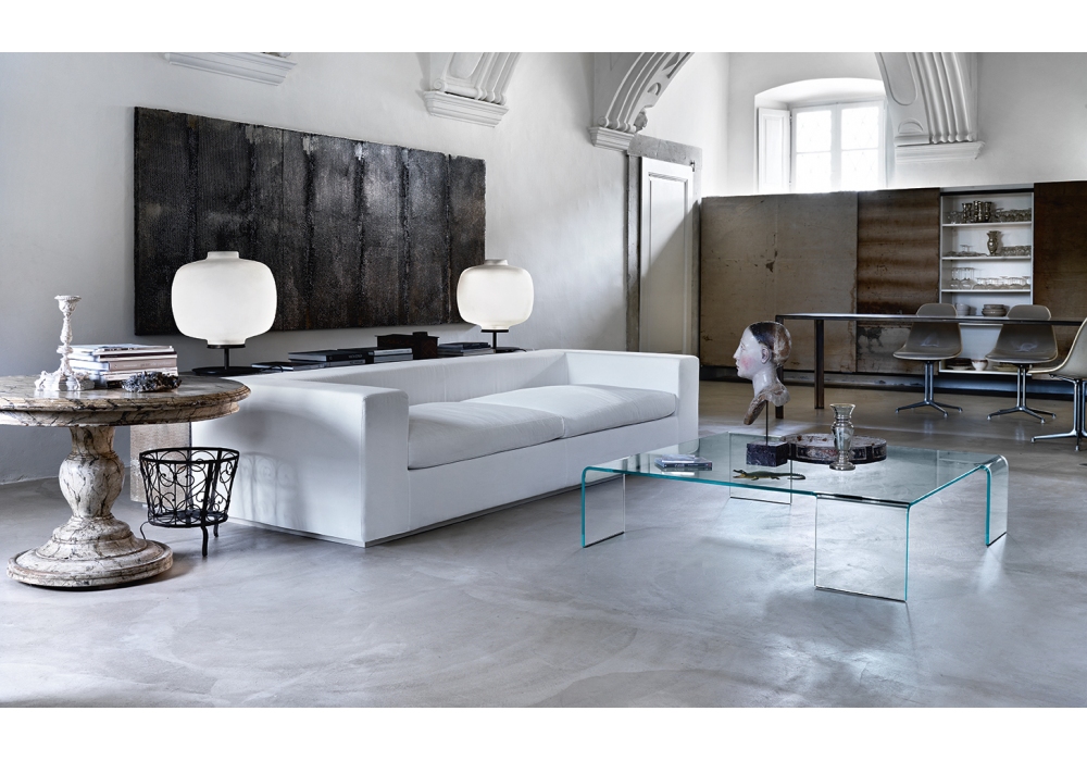 Neutra de Rodolfo Dordoni pour Fiam est une table basse monolithique en verre courbé de 12 mm.