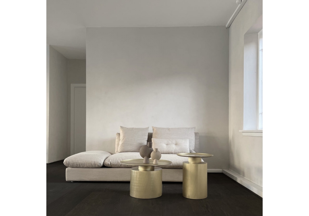 Pillar conçue par Kristian Sofus Hansen & Tommy Hyldahl pour 101 Copenhagen est une table basse en métal plaqué. Disponible en différentes finitions et tailles.