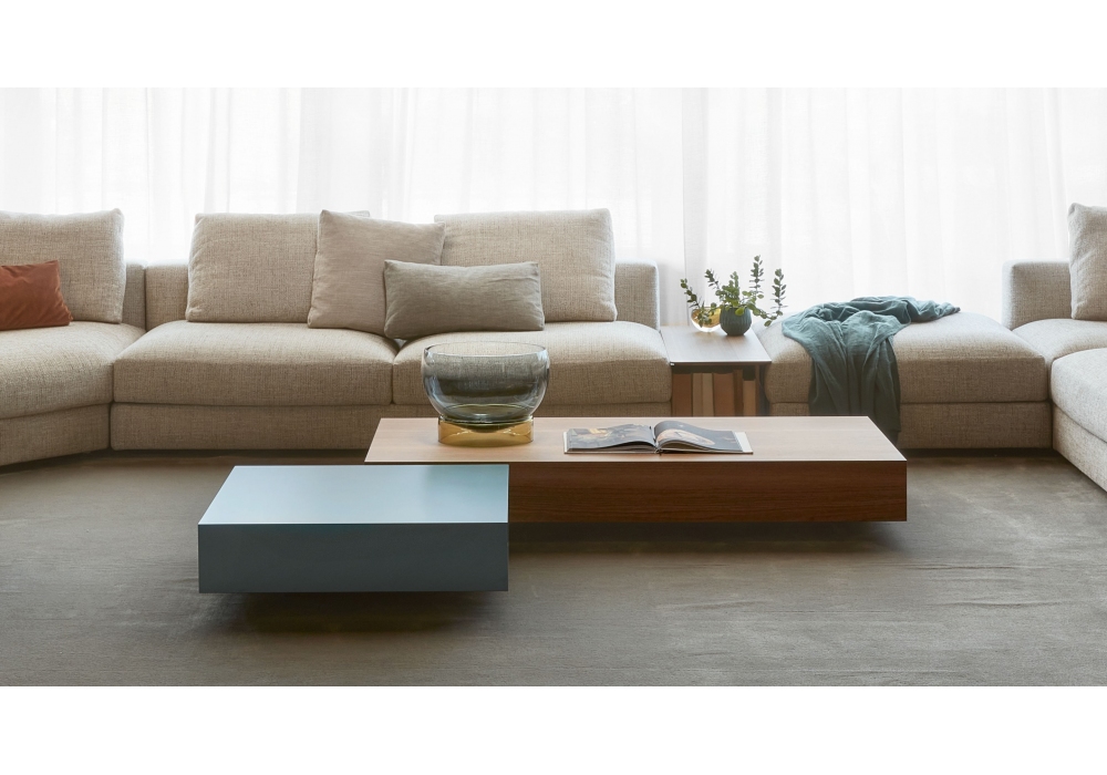 Dolmen conçue par David Lopez Quincoces pour Lema est une famille de tables basses caractérisées par des plateaux aux formes géométriques naturelles - rectangulaires, carrées ou rondes - à composer librement entre elles. La structure est en métal peint en bronze, tandis que les plateaux sont disponibles en laqué mat ou en bois.