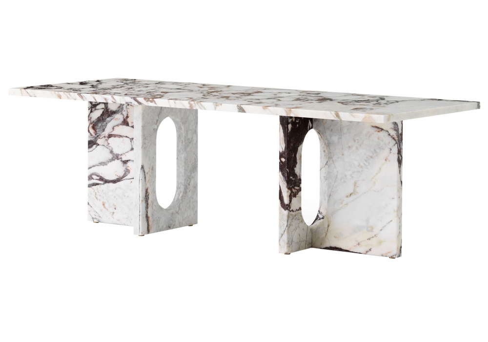Androgyne Lounge conçue par Danielle Siggerud pour Audo Copenhagen est une table basse rectangulaire réalisée en chêne, noyer ou marbre. Disponible en différentes finitions.