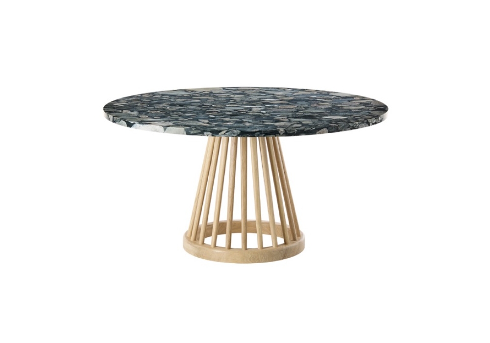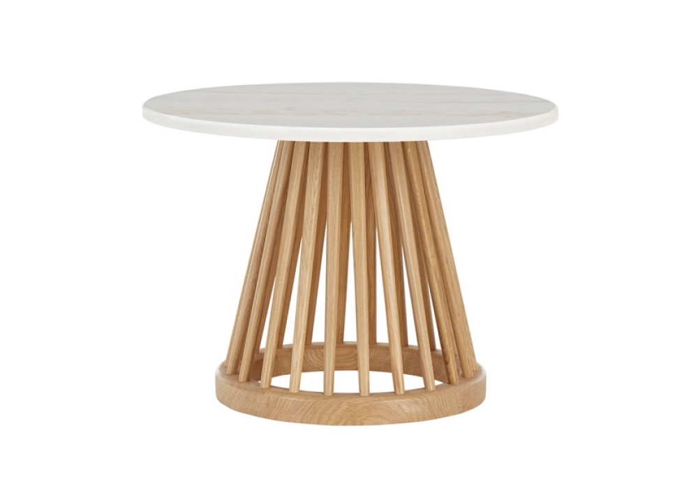 Fan conçue par Tom Dixon est une table d'appoint avec plateau en marbre disponible en différentes finitions et dimensions. Piètement en bois, disponible en chêne naturel ou bouleau teinté noir.