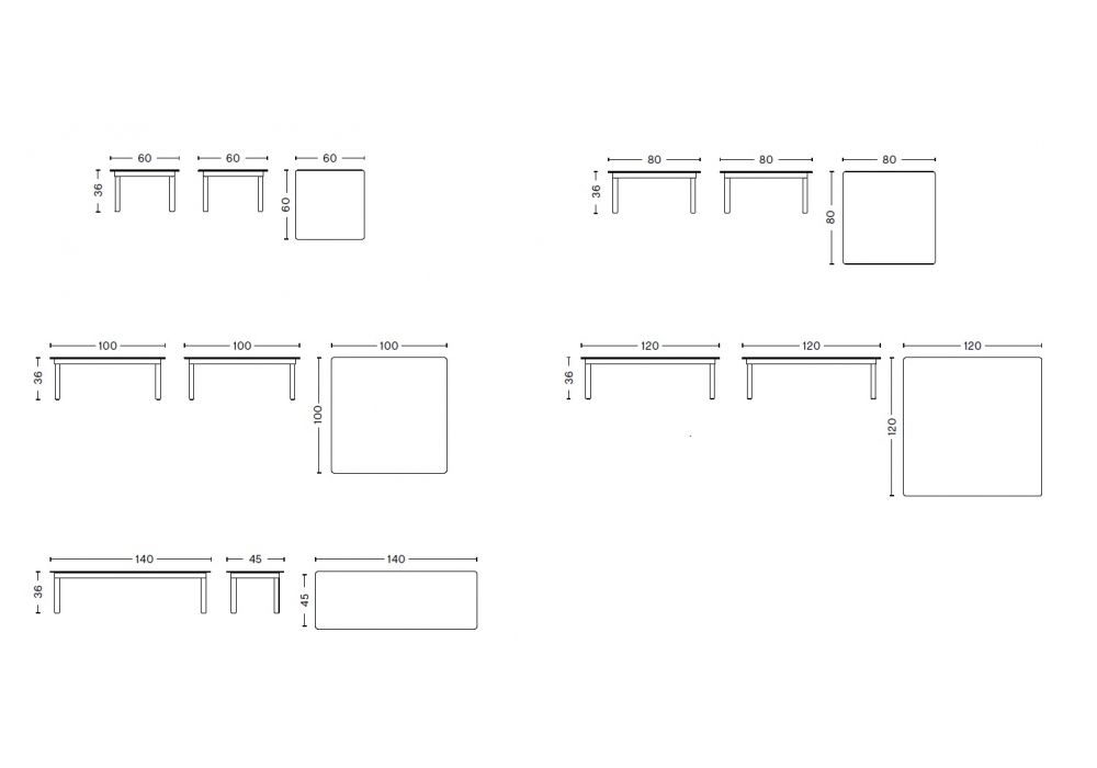 | Dimensions | 60 x 60 x H 36 cm; 80 x 80 x H 36 cm; 100 x 100 x H 36 cm; 120x 120 x h 36 cm; 140 x 140 x H 36 cm. |