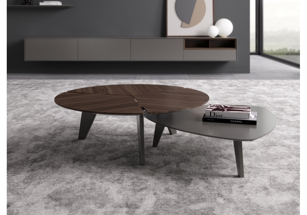Trevo conçue et produite par Gual Design est une table basse triangulaire laquée mate. Disponible en différentes finitions.
