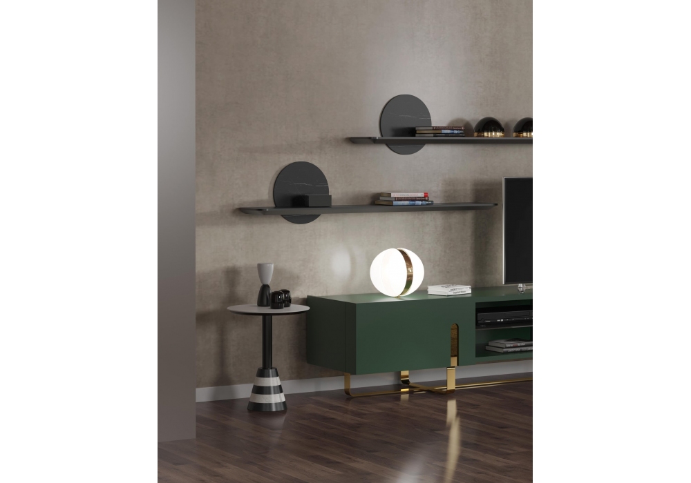 Meryl conçue et produite par Gual Design est une table basse avec base conique en marbre stratifié de Carrare et marquina. Structure en fer peint en noir et plateau recouvert de céramique effet marbre mat. Disponible en différentes tailles et finitions.