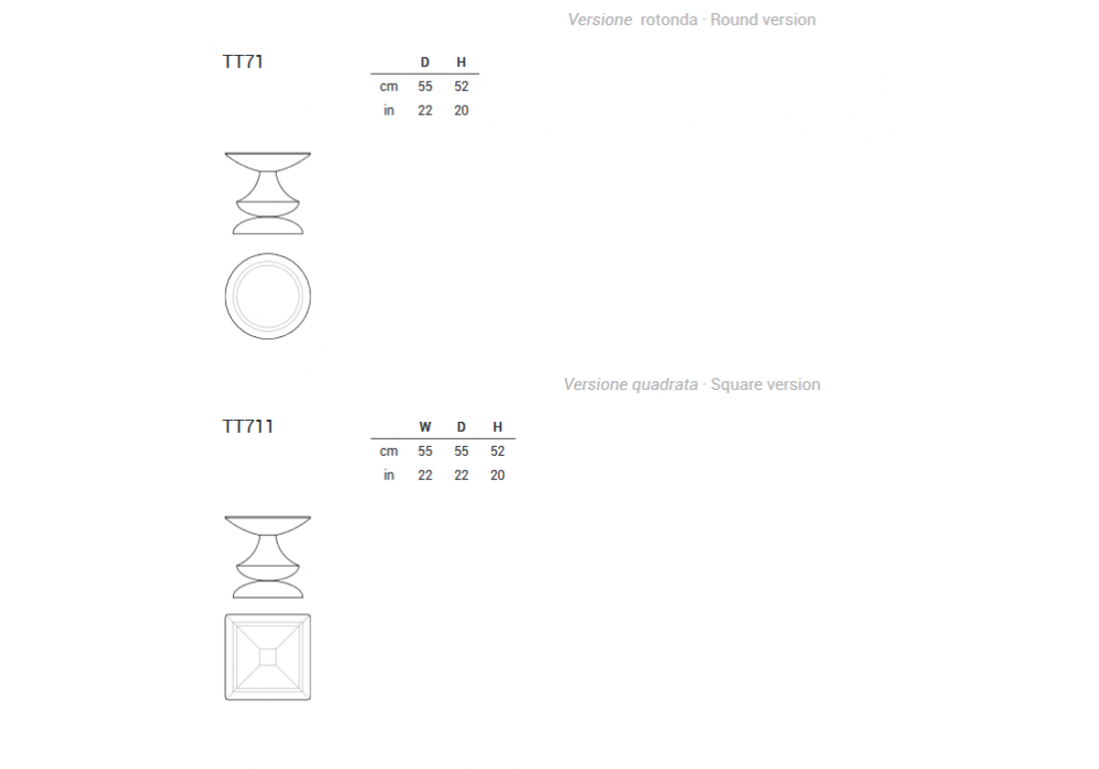 | Dimensions | - Ø 55 x H 52 cm; - 55 x 55 x H 52 cm. |