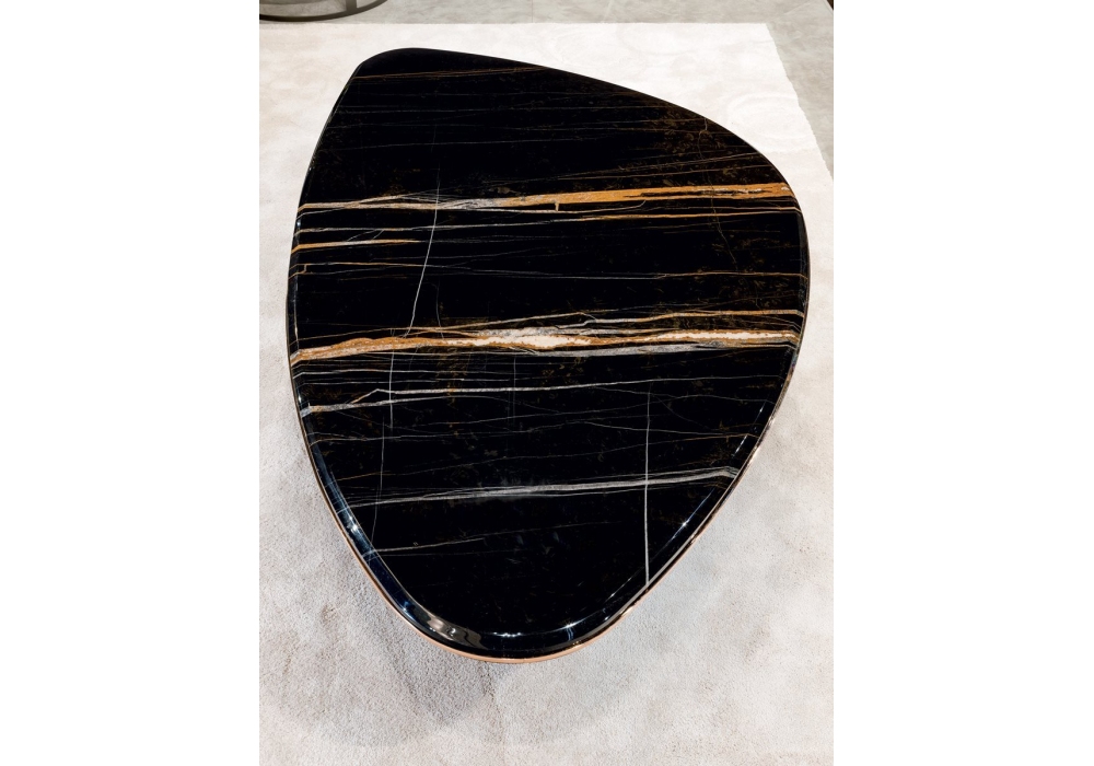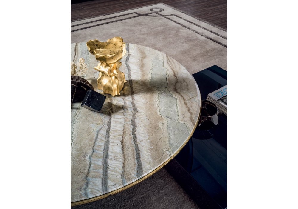 Gehry conçue par Giusepe Viganò pour Longhi est une table basse avec base hyperboloïde en fibre de verre avec structure interne en métal peint et recouverte de cuir. Pièces métalliques sous la base et sous le plateau en finition brillante ou mate et plateau en miroir ou en marbre. Disponible en différentes dimensions.
