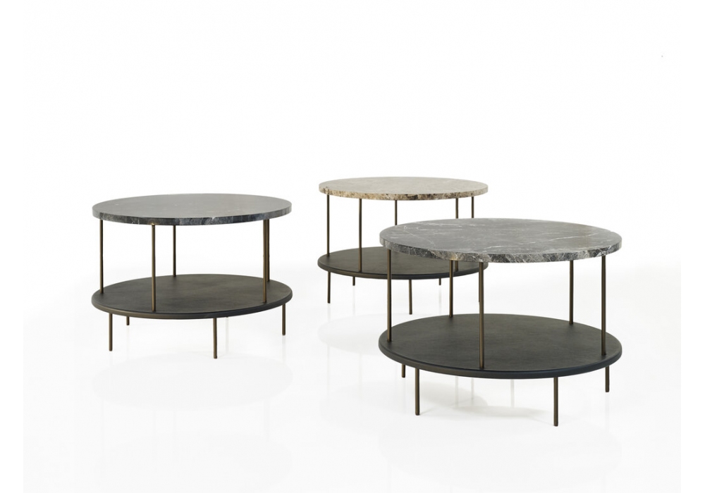 DD conçue par Jaime Hayon pour Wittmann est une table basse avec structure en métal et plateau en marbre ou recouvert de cuir en différentes finitions. Disponible en différentes tailles.