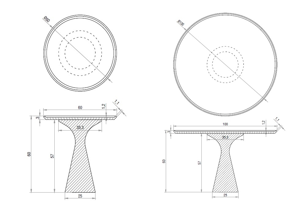 | Diamètre de plateau | Ø 60 cm; Ø 100 cm. |