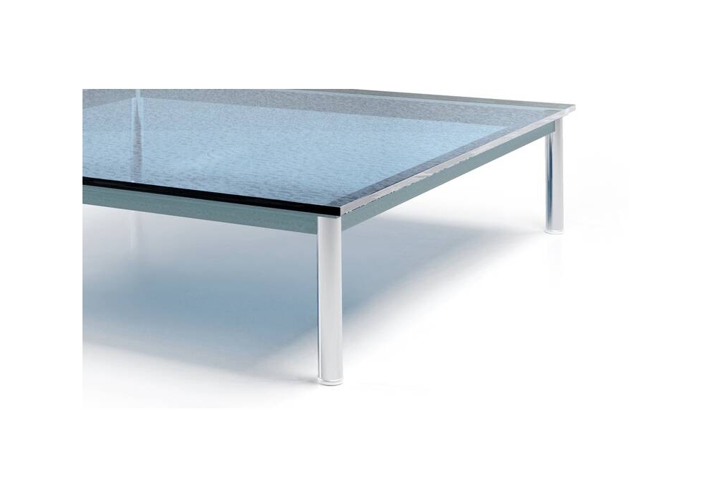 10 Table en Tube Basse, Grand Modèle conçue par Le Corbusier, Pierre Jeanneret, Charlotte Perriand pour Cassina est une table basse avec plateau en cristal, verre moulé ou coloré et pieds chromés, avec structure peinte. Disponible en différentes finitions et dimensions.
