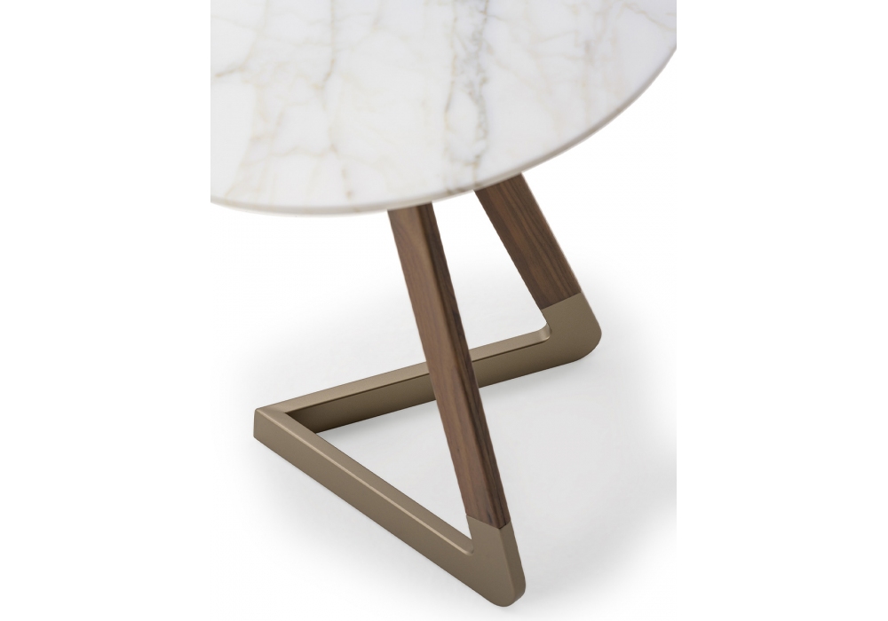 Drum conçue par Giuseppe Viganò pour Turri est une table d'appoint avec structure en bois de noyer avec détails en métal finition platine clair mat. Plateau formé de particules de bois plaqué noyer ou marbre.