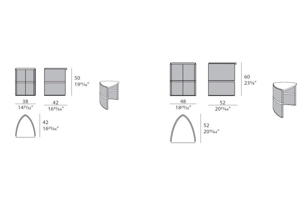 | Dimensions | 38 x 42 x H 50 cm; 48 x 52 x H 60 cm. |