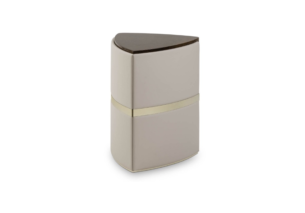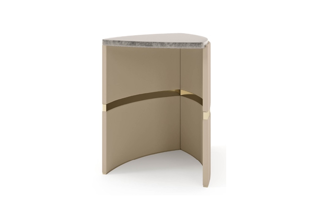 Madison conçue par Andrea Bonini pour Turri est une table d'appoint avec structure et plateau en MDF et panneaux de particules avec finition polyester brillante décorée à la main. Revêtement de la structure en différents cuirs avec des détails en métal doré clair.