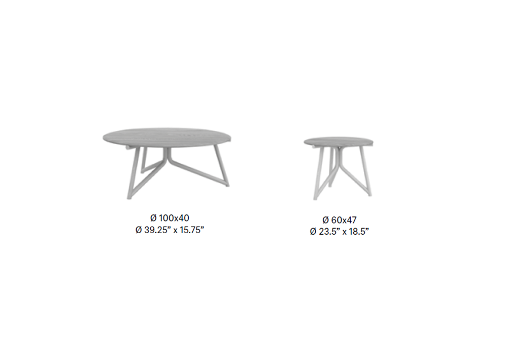 | Dimensions | • Ø 100 x 40 cm; • Ø 60 x 47 cm. |