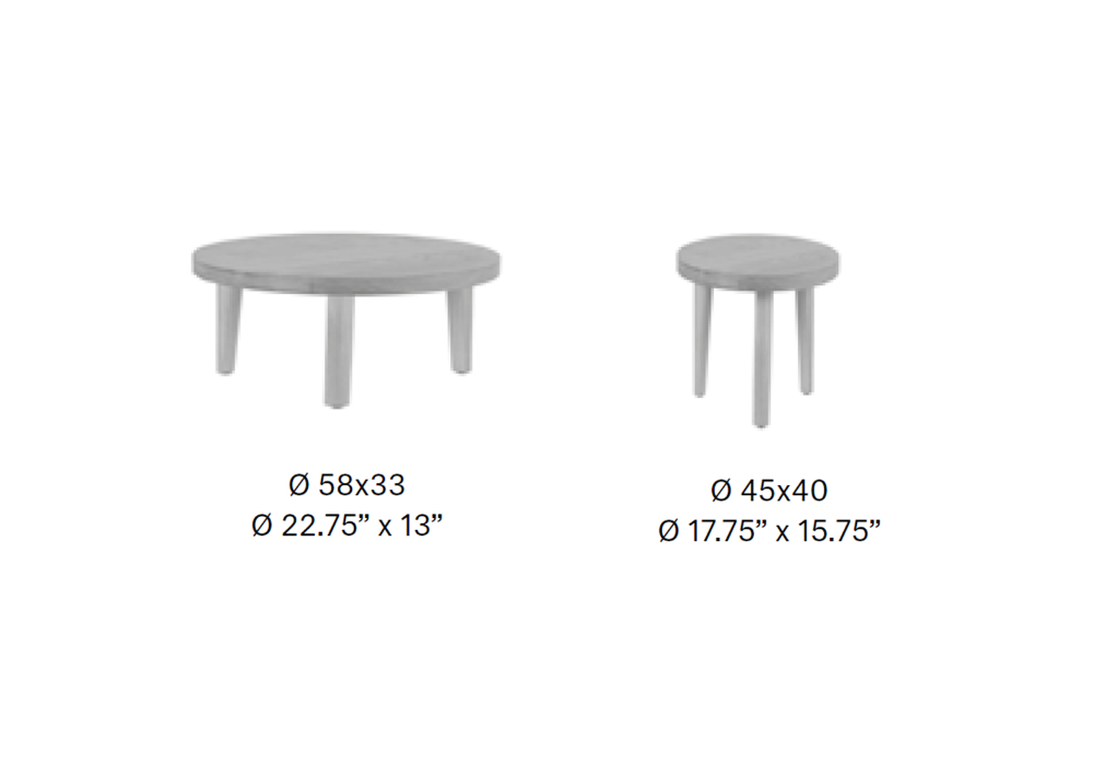 | Dimensions | - Ø 45 x 40 cm; - Ø 58 x 33 cm. |