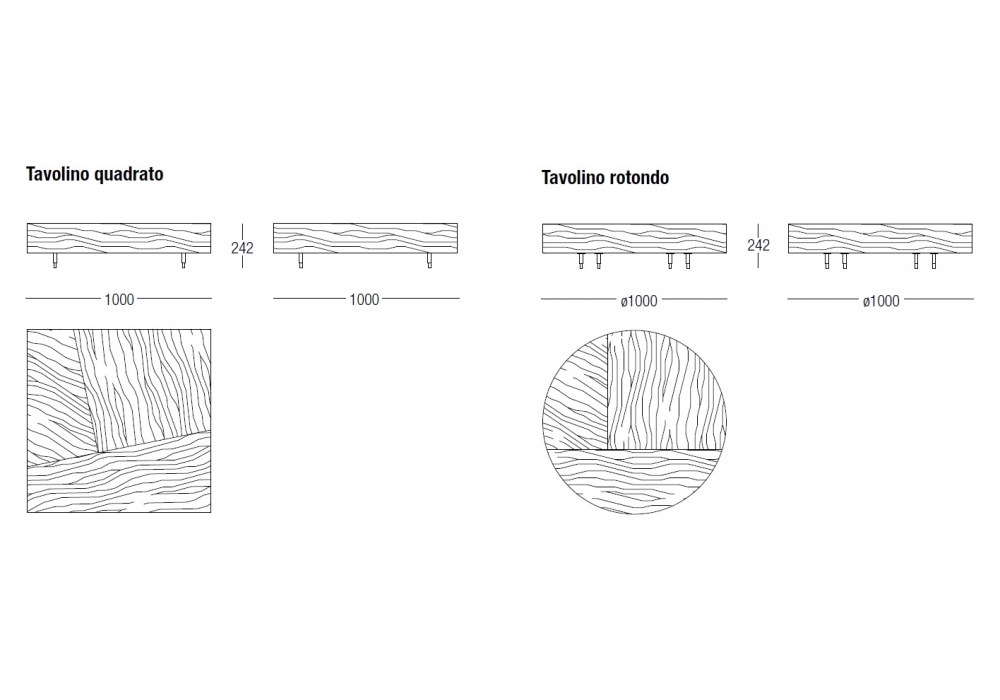 | Plateau | 100 x 100 cm; Ø 100 cm. |