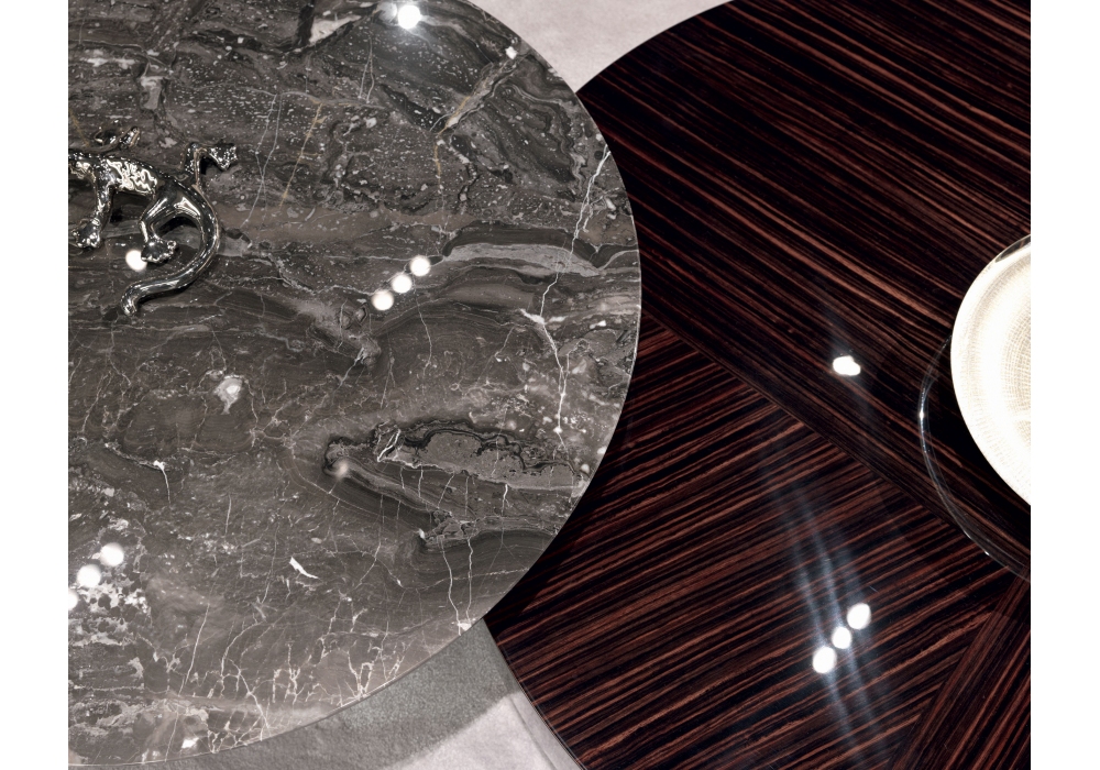 Gemini conçue par Andrei Munteanu pour MisuraEmme est une table basse réalisée avec base en métal peint en bronze à canon et plateau en essence mate ou brillante. Disponible en différentes finitions et dimensions.