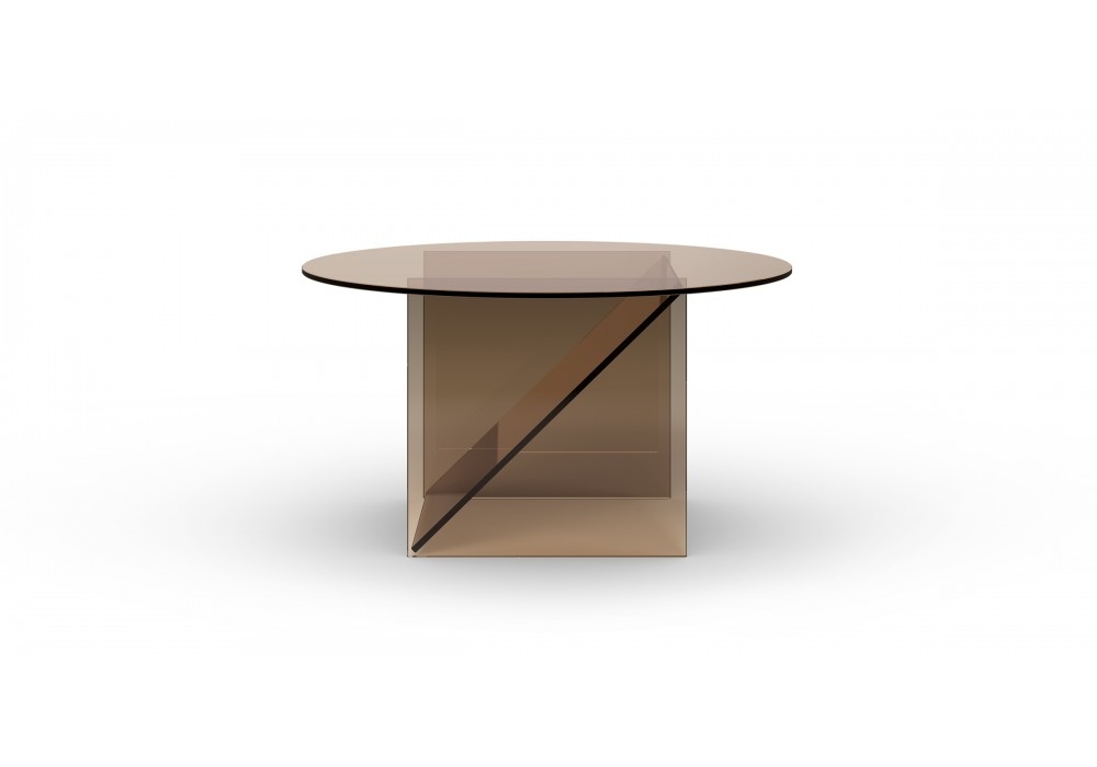 Kaisa conçue par Annabelle Klute pour E15 est une table d'appoint avec structure en verre noir, miroir et marron. Disponible en différentes tailles.