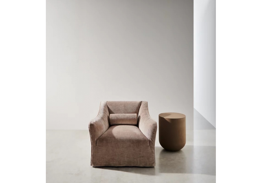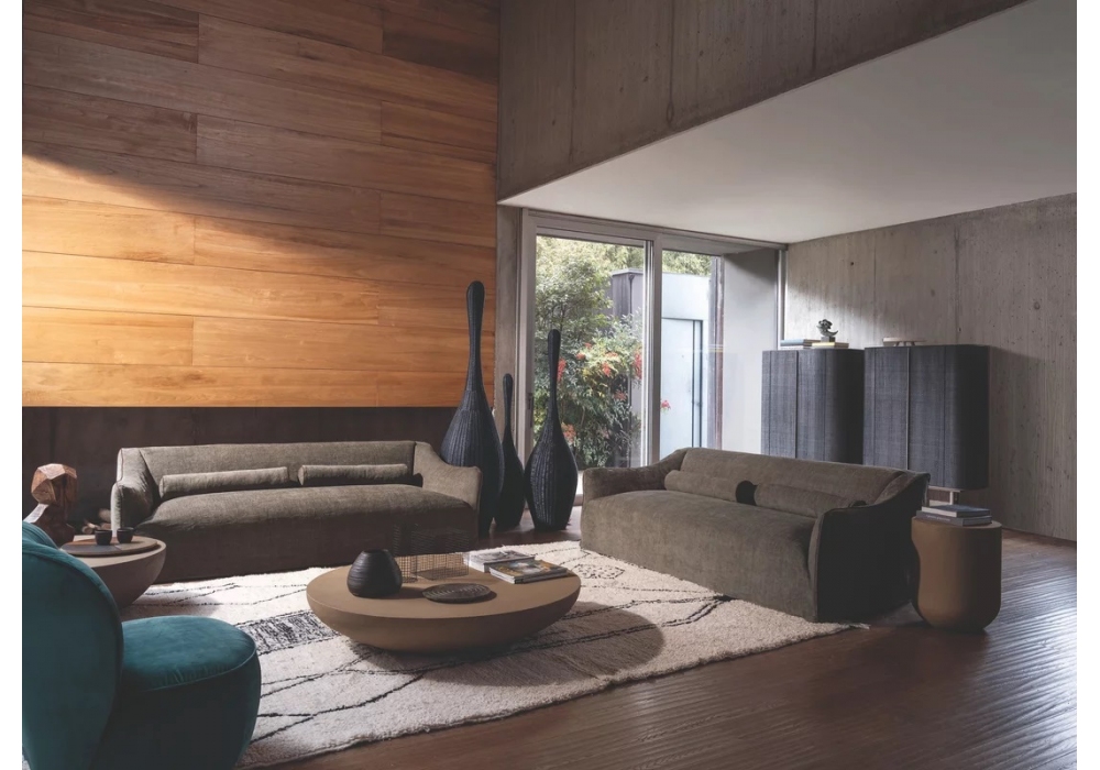 Heiko conçue par David Lopez Quincoces pour Gervasoni est une table basse en polymère haute densité et finie avec une couche d'argile colorée Ombra, Cassel ou Sienne. Traitement mat anti-taches. Disponible en différentes dimensions.