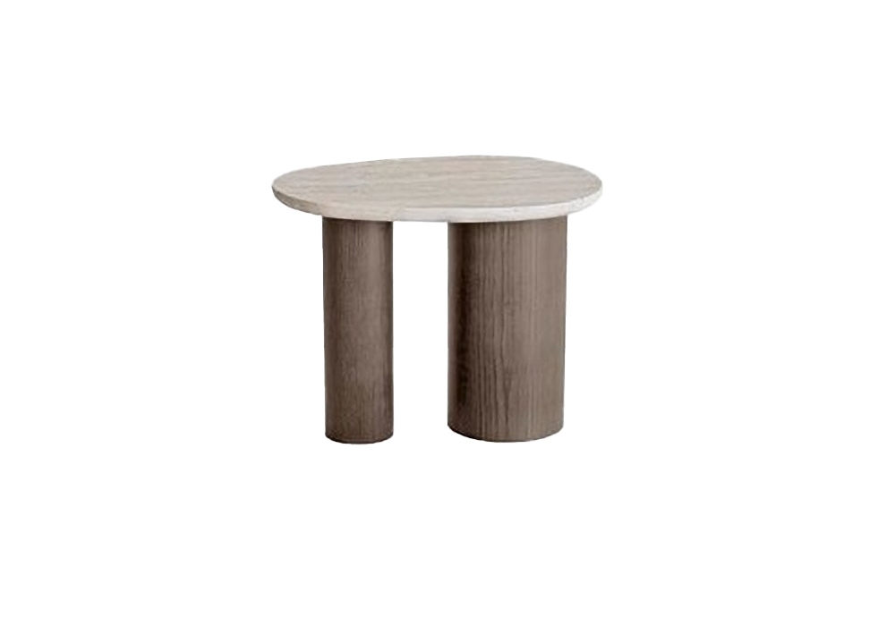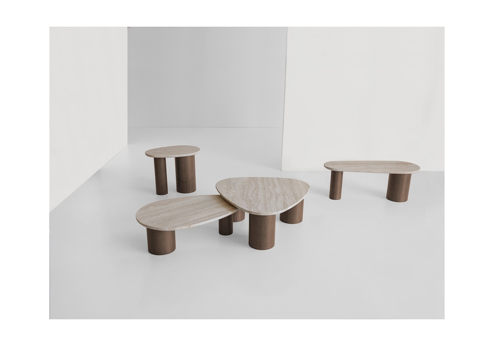Jade conçue par Hanne Willmann pour Potocco est une table d'appoint avec double base en bois de frêne et plateau en différents types de marbre.