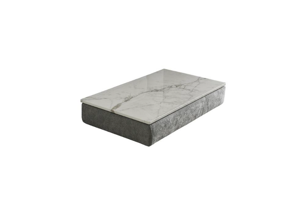 Pillopipe Evo conçue par Paola Navone pour Casamilano est une table d'appoint avec structure en sapin massif et contreplaqué de peuplier avec rembourrage en mousse de polyuréthane et revêtement en tissu ou cuir. Le pinao est en marbre.