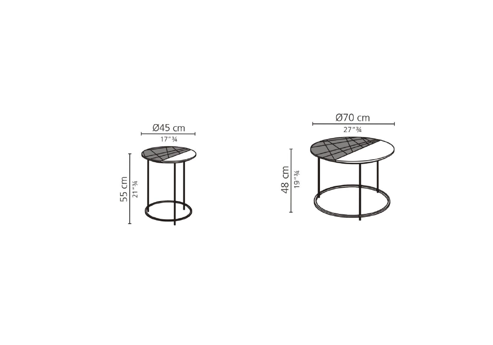 | Dimensions | Ø 45 x H 55 cm; Ø 70 x H 48 cm. |