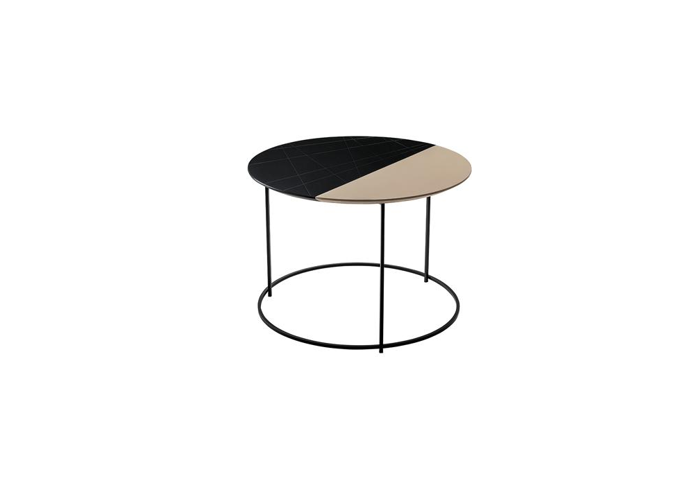 Twist conçue par Laboratorio Avallone pour Casamilano est une table d'appoint avec plateau en MDF avec graphisme en bas-relief, en finition laquée brillante bicolore. La base est en métal peint en noir mat.