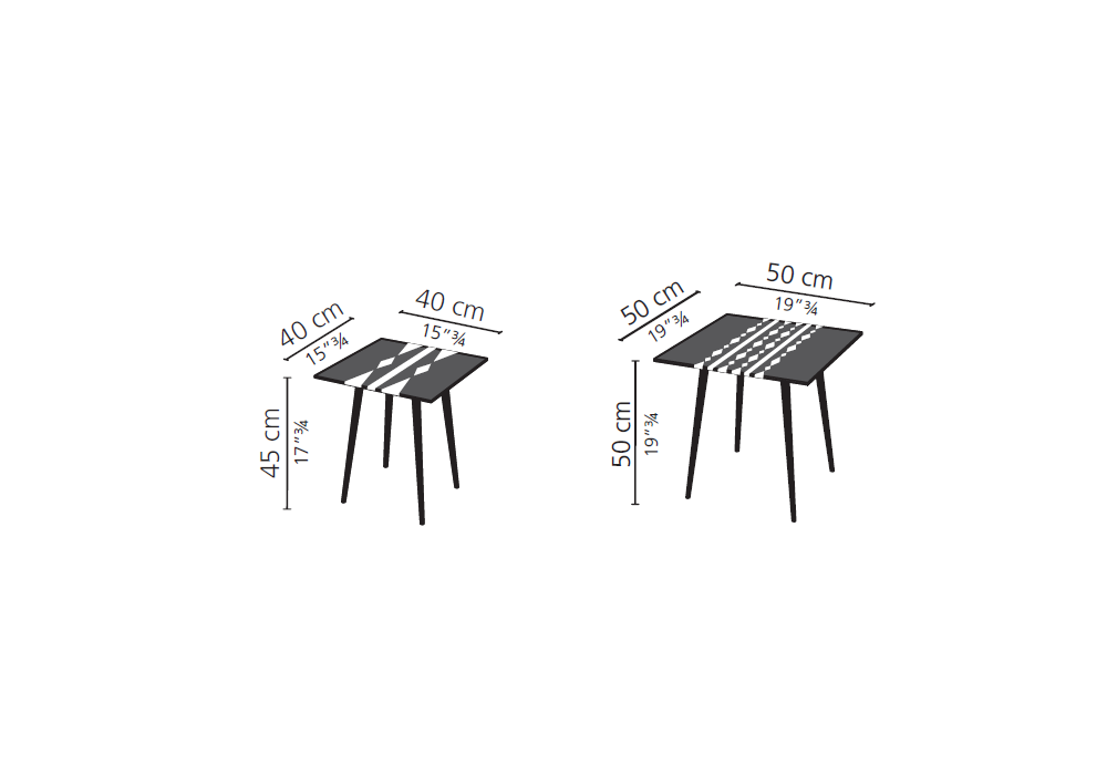 | Dimensions | 40 x 40 x H 45 cm; 50 x 50 x H 50 cm. |
