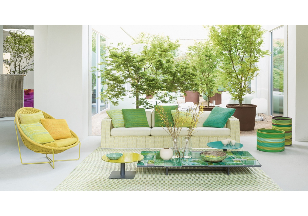 Sciara Mottainai conçue par Marella Ferrera pour Paola Lenti est une table basse disponible en différentes tailles et finitions. Structure en acier inoxydable AISI 304 peint mat en gris lave, embouts en plastique. Chaque table basse est une pièce unique, réalisée en mélangeant des éléments récupérés de productions précédentes selon un critère esthétique, qui met en valeur chaque composant, et un critère conceptuel, qui reflète la philosophie « non-gaspillage » à la base de la collection Mottainai.