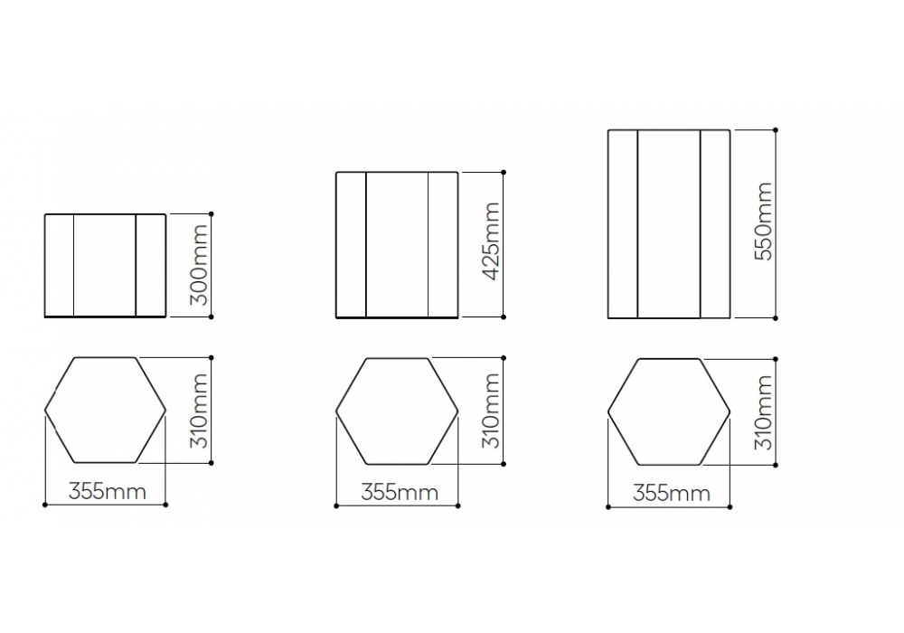 | Dimensions | Small_ 35.5 x 31 x H 30 cm; Medium_ 35.5 x 31 x H 42.5 cm; Large_ 35.5 x 31 x H 55 cm. |