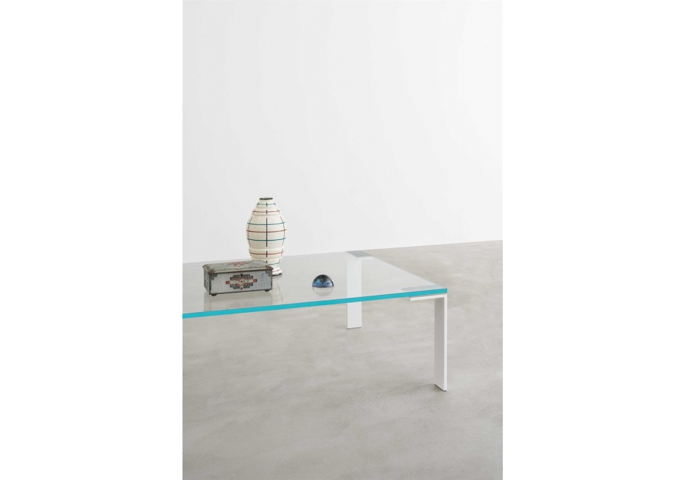 Liko Glass 403 conçue par Arik Levy pour Desalto est une table basse avec pieds en acier et plateau en cristal. Disponible en différentes finitions et tailles.