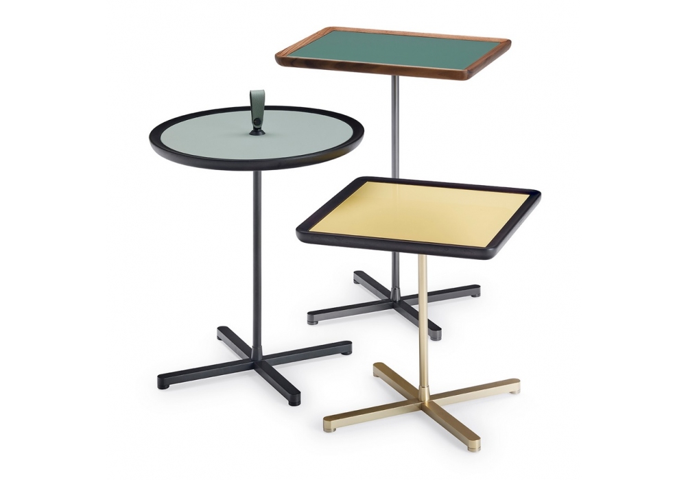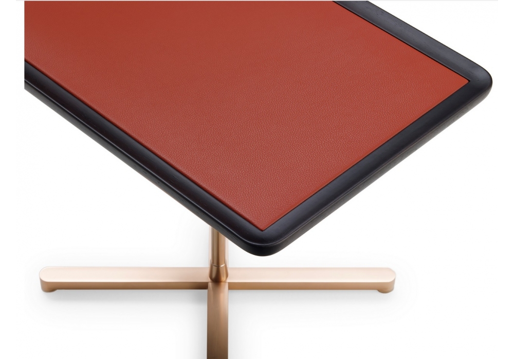 Galimede Light conçue par Giuseppe Casarosa pour Ceccotti Collezioni est une table basse avec structure en acier, plateau en noyer américain. Le bas du plateau est disponible en bois, cuir ou verre coloré. Disponible en différentes finitions et tailles.