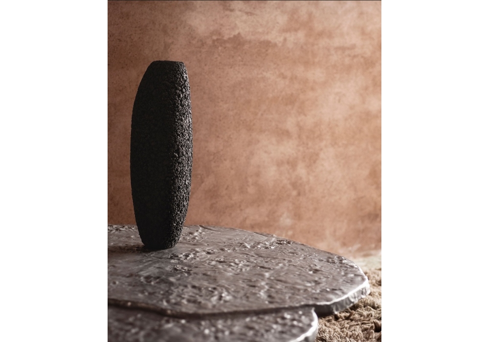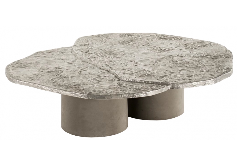 Brut conçue par Roberto Sironi pour Tacchini est une table basse avec base en béton léger, plateau en fonte d'aluminium.