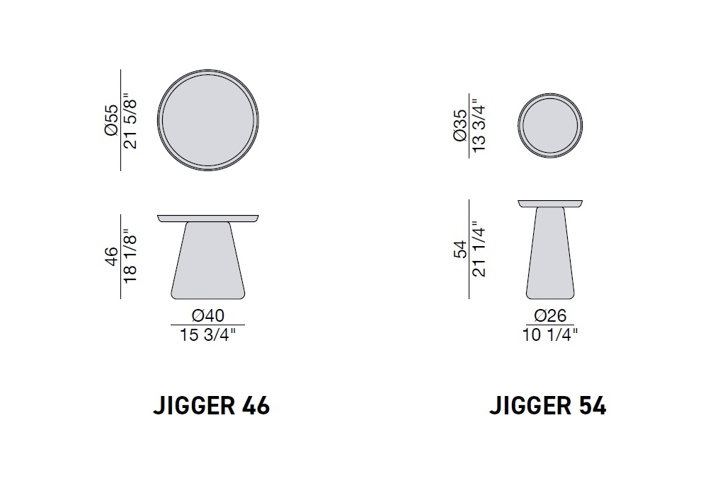 | Dimensions | • Ø 55 x H 46 cm; • Ø 35 x H 54 cm |