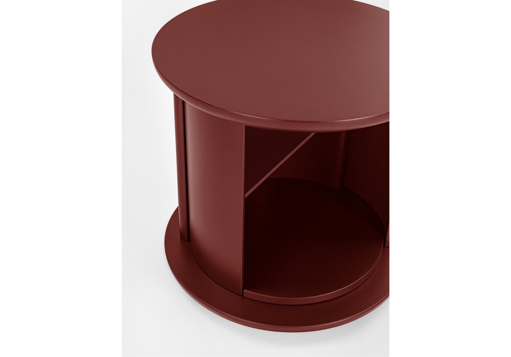 Hide&Seek Mini conçue par Pietro Russo pour Gallotti&Radice est une table basse avec structure, demi- cylindre pivotant et étagère en bois laqué brillant ou mat. Couleurs disponibles: “Rosso Persia”, “Grigio Londra”, “Nero Giza”, “Bianco Camargue”, “Verde Provenza”, “Blu Pacifico”, “Bordeaux Etruria”, “Rosa Jaipur” ou “Sabbia del Nilo”. Convient aussi comme table de chevet pour la chambre.