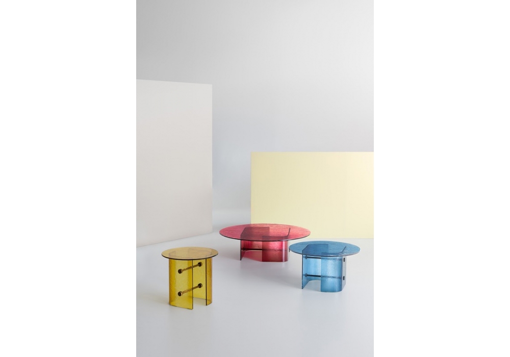 Double L Glaze conçue par Chiara Andreatti pour Potocco est une table basse entièrement réalisée en verre trempé coloré. Le plateau est de forme circulaire avec une base structurée dotée de deux pieds en forme de L. Double L Glaze est disponible en différentes finitions et modèles.