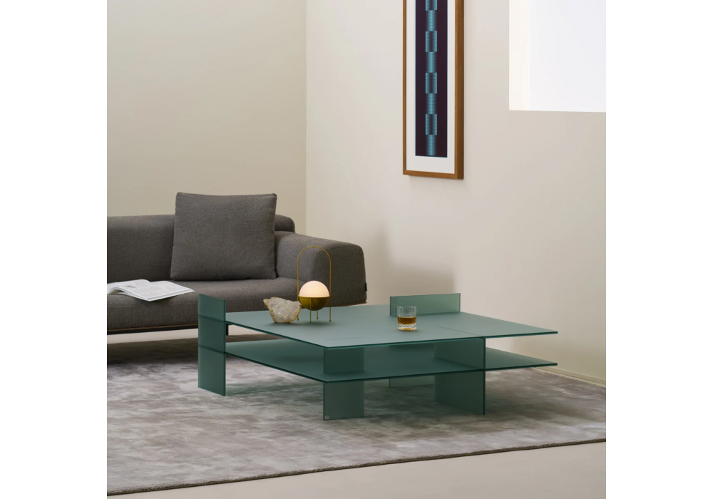 Kazimir conçue par Michael Anastassiades pour Glas Italia est une table basse entièrement réalisée en verre spécial dépoli à l'acide vert ou trempé extralight. Les différentes feuilles superposées sont ancrées les unes aux autres selon un procédé de collage UV. Kazimir est disponible en différentes finitions.