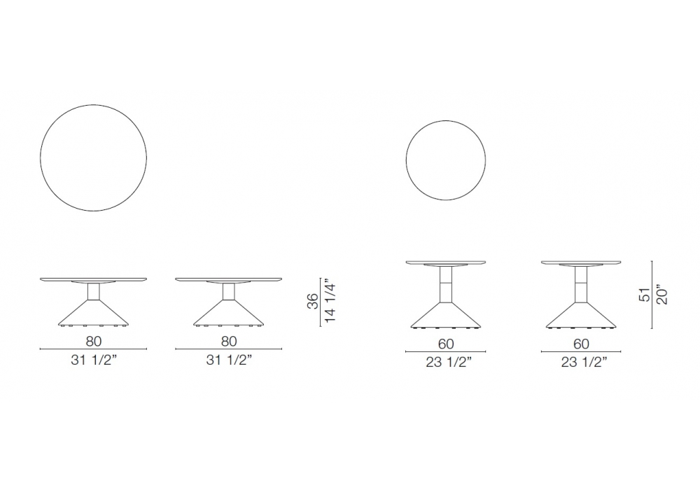 | Dimensions | Ø 80 x H 36 cm; Ø 60 x H 51 cm. |