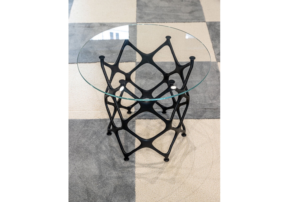 X Table System conçue par Hsiang Han Hsu pour Cappellini est une collection de tables basses réalisées avec un plateau en stratifié épais ou en verre et une base modulaire en plastique moulé par injection.